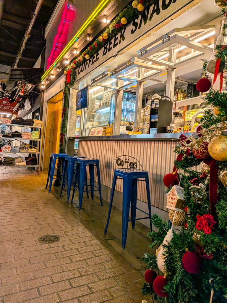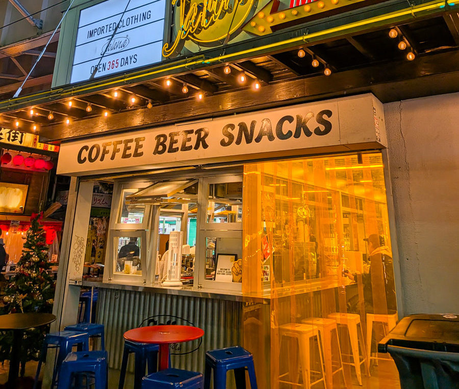 上野と御徒町の中間くらいの位置、ガード下の賑やかな通りに面した場所にある「Coffee by Jalana」に行ってみた。POPで楽しげな外観のカフェ。夜に訪れたのでネオンの照明が際立って綺麗だった。